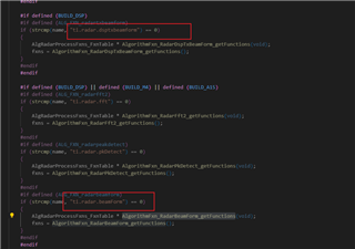 然后我找到了调用的原理:在apps\src\rtos\radar\src\alg_plugins\alg_fxns\common\alg_functions.c文件中根据宏定义去使用,如下图所示: