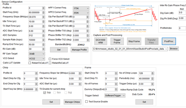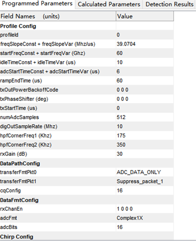 三、另外,还想请问一下,就是你们雷达的adc采样频率不能设定得小一些嘛?我尝试设定得小一些,就会报错:SAMPLING RATE IS NOT WITHIN [2, 37.5] Msps,但是对于我想采集呼吸心跳信号来说,如果我采样率特别大的话,就会导致我总体的采样时间特别短(例如我设定的10MHz的采样率,采集512个点,它总共用时才51.2us,那如果我要10s的呼吸心跳信号就需要采集195300个chirp,也就是需要1525个frame),如果我想采集大约10秒的呼吸心跳信号的话,那个数据量就太大了,所以我该怎样解决这个困难啊?