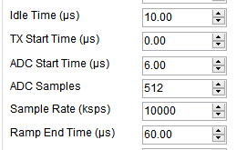 请问是否有错误?我理解的快时间采样率就是samplerate=10000kpsp=10MHz,实际工作带宽也就是2.0004GHz,脉冲重复周期也就是idletime+ramp end time=10+60=70us