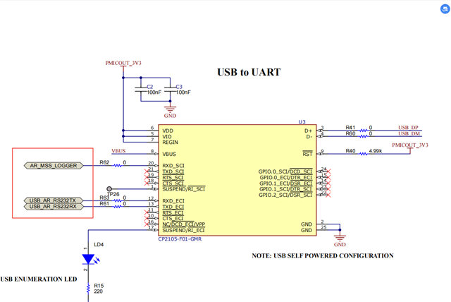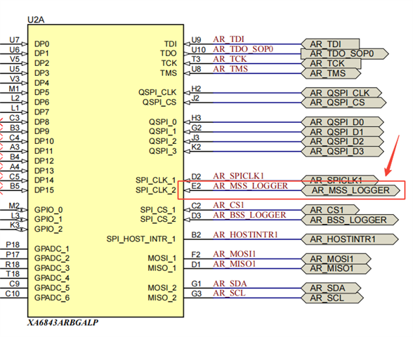 但是在out of box例程中,是将F14复用为数据串口发送脚,可是F14只存在于6843中,6843aop并没有F14这个引脚。从原理图上看,应该是E2引脚。