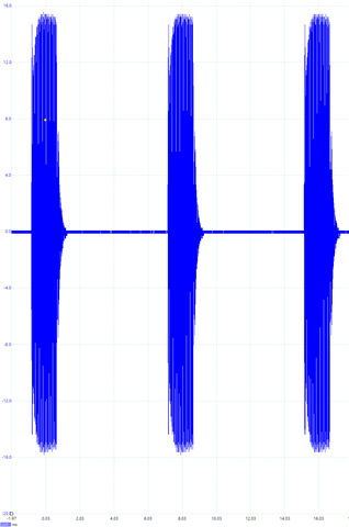 下面这个波形是用示波器获取的波形,使用5s/div进行,突发40s。