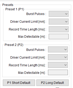 b)您可以根据预设更改一些设置:突发期间发送的脉冲数、记录长度、阈值配置、数字增益。 以下是GUI 中的图像,方便您使用并配置这些设置: