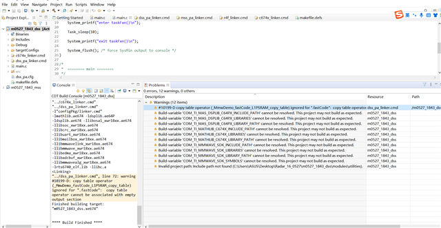 这里出错,有没有可能跟工程栏有两个cmd有关(c674x_linker.cmd和dss_pa_linker.cmd),发生了冲突?