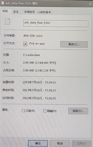 采集到数据的大小=正交采样4字节×帧数×chirps数×ADC采样点数×发射天线数×接收天线数