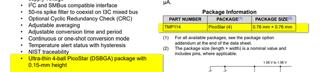 您好,我看数据手册TMP114就一种封装PicoStar也是DSBGA封装呢。