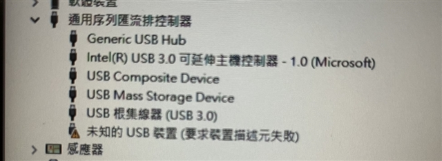 在我電腦上裝置管理員中也沒有正常顯示(如附圖"未知的USB裝置"),