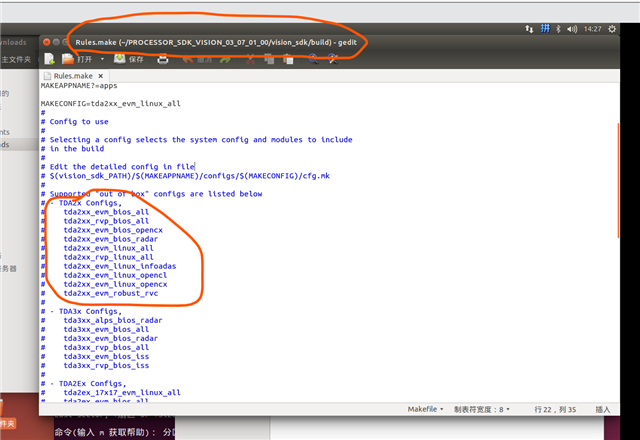 设备为AWR2243级联雷达, 当前使用的SDK版本为 PROCESSOR_SDK_VISION 03_07_01_00 (上述链接中的sdk),在build目录下的Rules.make文件下选项没有找到tda2xx_cascade_linux_radar and RADAR_STUDIO=yes configuration 见附图