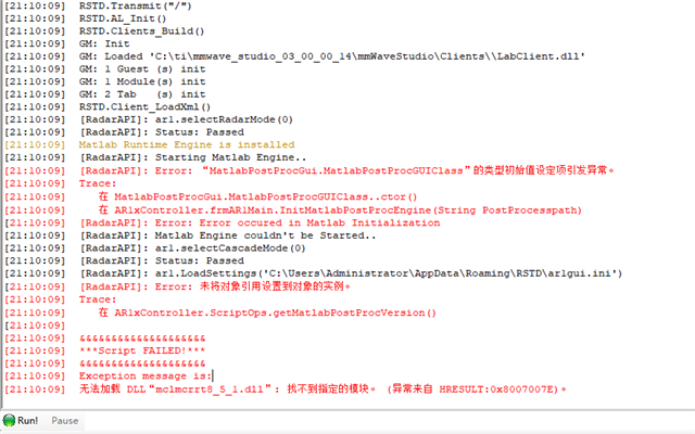 • 请问电脑操作系统是win7/win10吗?请看一下matlab是否安装32bit的?具体可以参考mmwave_studio_user_guide.pdf文档2.1 Installation
