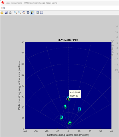 使用Radar Toolbox的SRR Example,可以得到SRR和Tracer, 速度(V)和位置(X,Y)