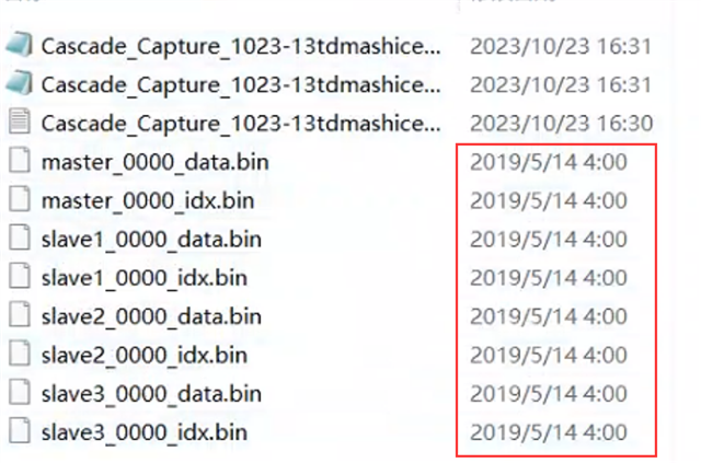,前两个是json文件,后面的是.bin文件。为什么后面几个文件的日期都是2019年呢?哪个文件才是我的回波数据呢?用matlab怎么读取回波数据呢?