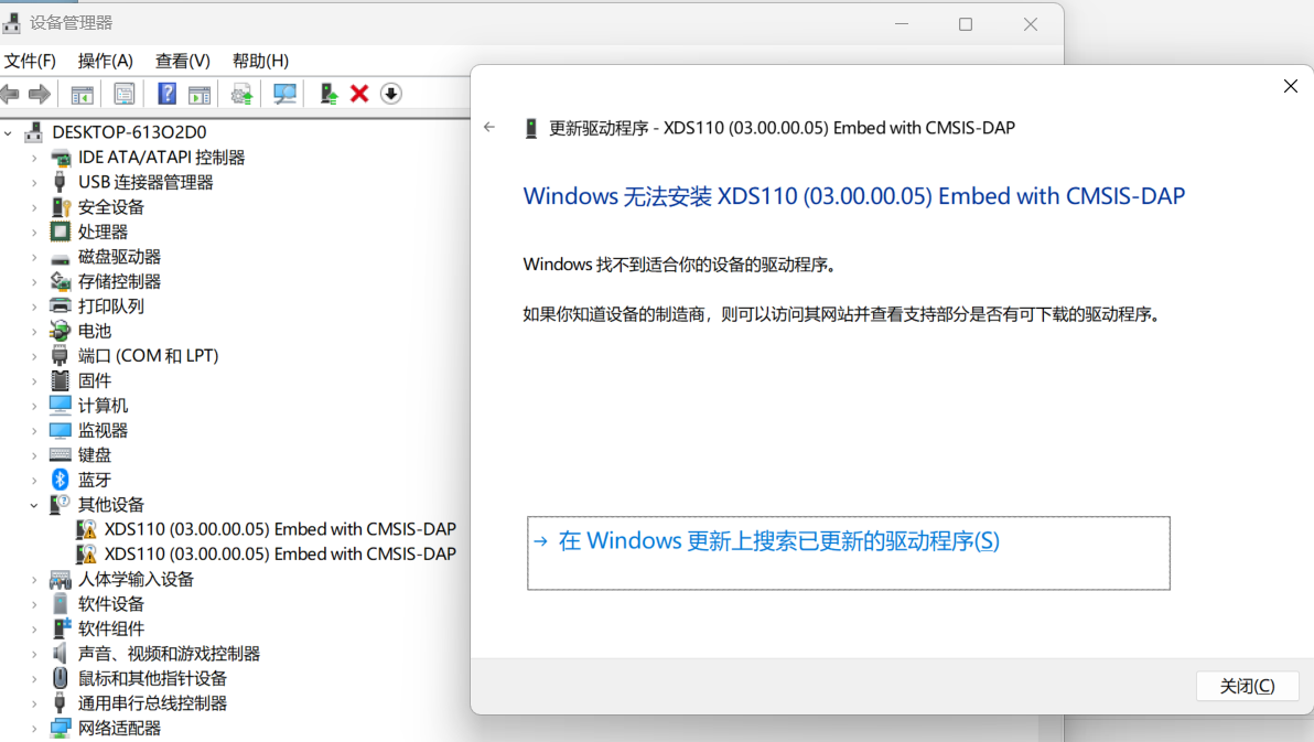DCA1000和电脑连接时要手动安装DXS驱动,但是点的话不能安装是为什么呢,情况如图。