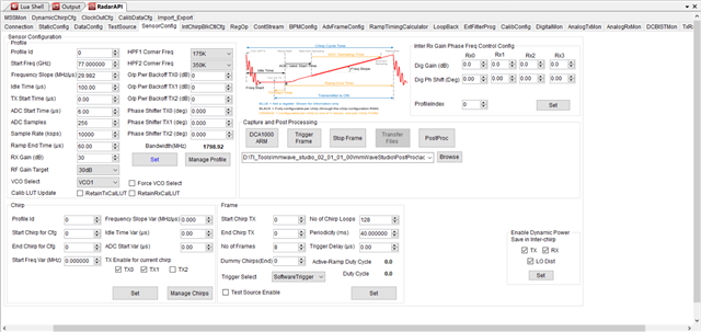 两者连接均没问题,DCA1000的FPGA版本也能正常识别,参数配置如图所示,但是无法正常采集数据,不知道是什么原因