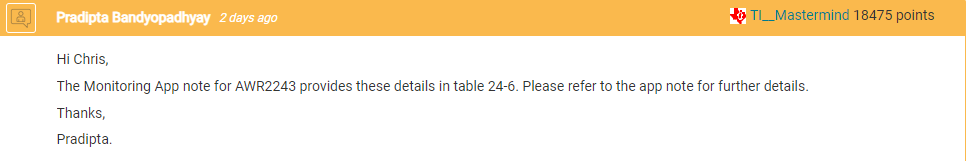 您好,请问AWR2243有什么配置方法可以让LO一直保持输出吗?我们调试想确定20G信号是否正常,但是要每次都需要上位机触发采样才有信号,不太方便测试
