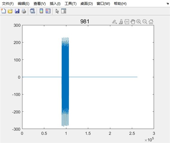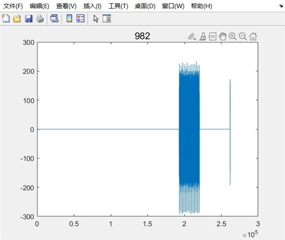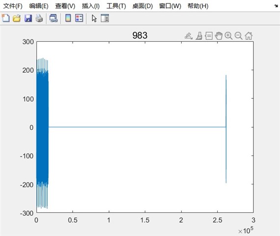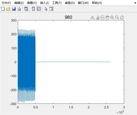 但是我将数据导入MATLAB中进行分析的时候发现,存在以下情况,这里的横轴就是时间,纵轴是幅值,并且没有进行实虚的结算,是最原始的程序,以下是MATLAB代码和部分结果显示效果: