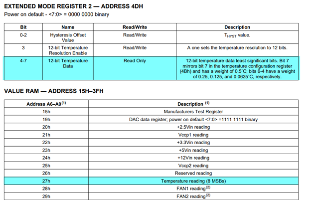 LM81: LM81使用时,不知道具体用哪个寄存器来读取温度,请支持下