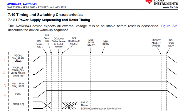 IWR6843 下面哪一組要先Turn ON,順序為何,時間為多少ms?