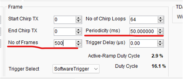 我设置的帧数为500,帧长为50ms,按理说测量时间应该为25s,开始捕捉数据是为什么大概4s钟就测完了?