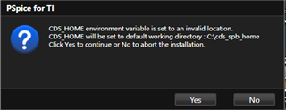 如图,安装时提示CDS_HOME environment variable is set to an invalid location.忽略后安装发现问题是,无法仿真ti的器件,提示找不到仿真模型,手动添加模型后仿真结果是错误的。想问下这个安装时的问题怎么解决?