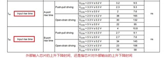 ①规格书上面写着端口的输入上升下降时间,trA和trB是指的是外部输入芯片的上升下降时间,还是指芯片对外部输出的上升下降时间?