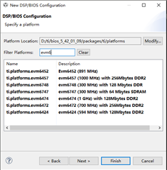 你好,添加DSP/BIOS配置当前工程时,选择项没有对应的器件型号平台(6678)。但是创建SYS /BIOS项目时,却可以检索到ti.platforms.wvm6678.