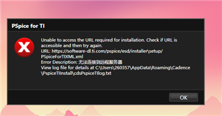 PSPICE-FOR-TI安装时显示无法连接服务器,安装日志显示无TI_URLs文件,实际目录有该文件