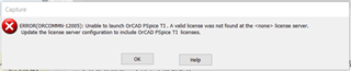 您好,是第一次安装完启动就报这个错误吗?安装完是否重启电脑? 电脑上是否由安装ORCAD软件?启动Pspice for TI的时候是否ORCAD已经打开?如果ORCAD在运行状态,将其退出,再启动spice for TI再试试。
