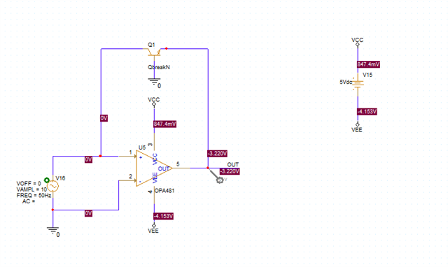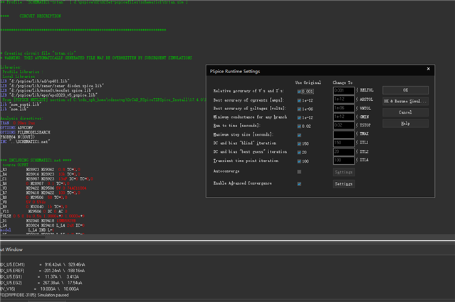 PSPICEforTI 三级管对数指数电路 出现这个问题怎么解决