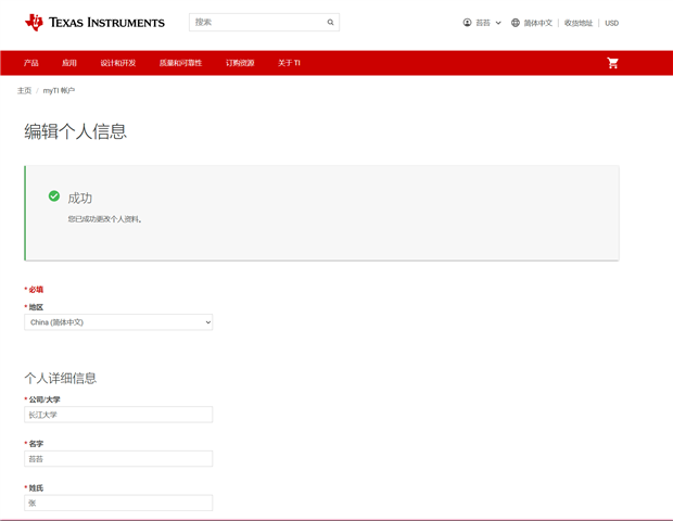 不要在Pspice 注册页面,直接在ti官网 https://www.ti.com。然后到 Account->Personal information 页面,填写完整信息。然后退出登录,再进入Pspice for TI注册页面https://www.ti.com/tool/PSPICE-FOR-TI重新申请。