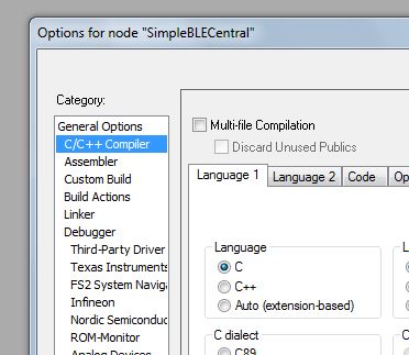 官方的CC2540工程都是采用C语言进行创建编译的,  应用要求增加C++的类,编译失败。