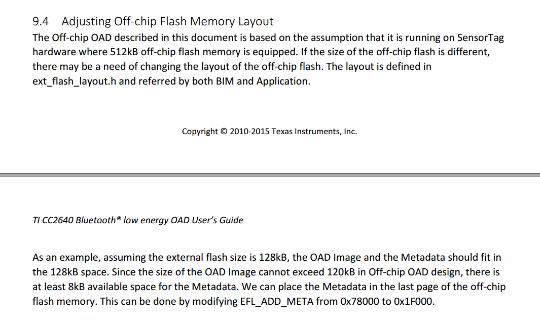 我把两个hex文件烧到一个没有外挂flash的板子,OAD服务能跑起来,于是找了一个外挂256K的flash的板子,烧进去没有起来,看到需要做调整,后边0x7800 to 0x1F没看明白,需要怎么修改