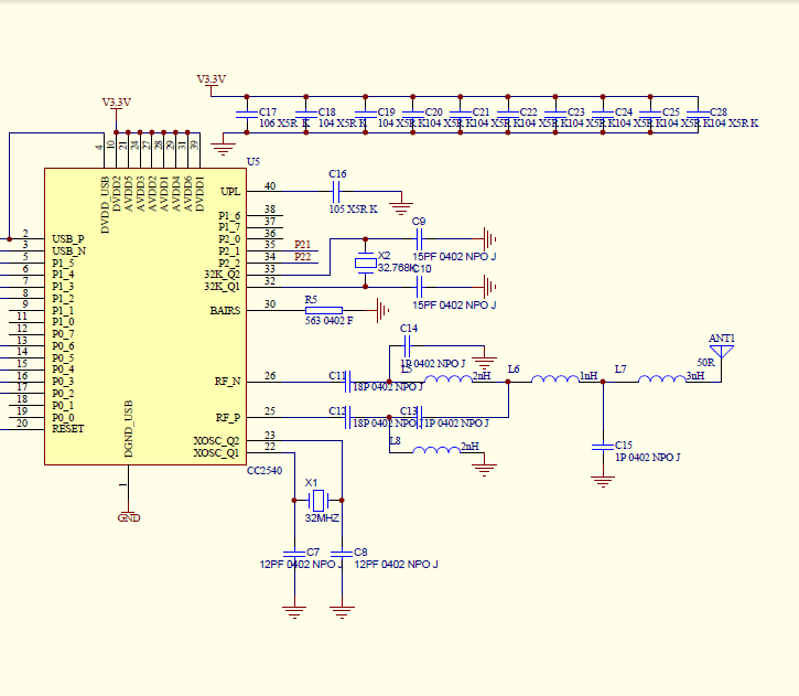 请问各位高手,有没遇到过用CC2540做的蓝牙过不了CE,本人用TI CC2540做的蓝牙,软件测试工具用的是TI官网下载工具,过TUV认证没通过,附上我的原理图和测试报告,请求大家帮忙出出主意怎么改善才能通过认证,在此谢谢大家!