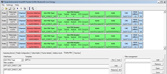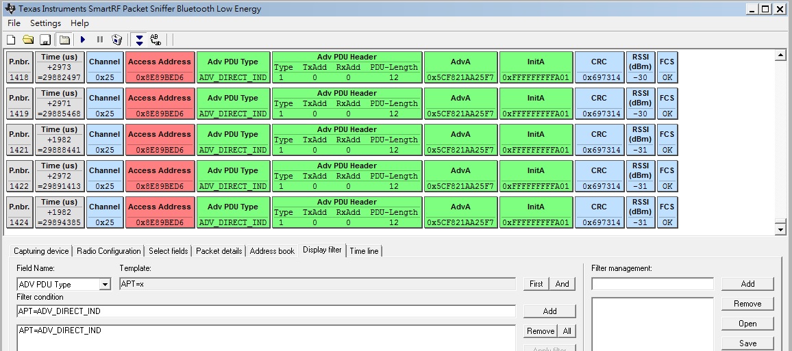 然後觀察sniffer,只看到有定向的ADV出現,如下圖。