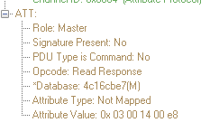 Not mapped 就是你的这个特征值没有正确注册,然后对方在查找服务的时候没有找到,然后你就擅自用这个特征值去write了,就得到了这个结果。