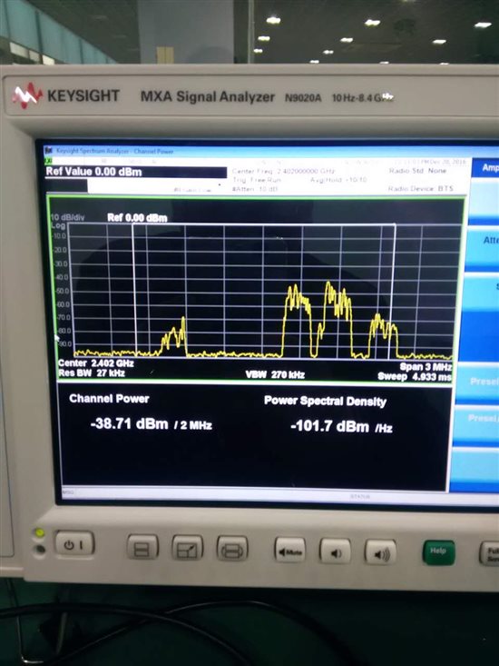 我公司需要进行CC2540蓝牙模块的认证检测,检测时要固定信道,全功率持续发射。我使用smartRF Studio 7配合 SmartRF04EB仿真器,设置好参数后,用频谱仪扫描RF信号,发现CC2540发射的信号并没有固定在设置的信道上,是不是CC2540使用的固件不对??