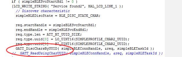 GATT_ReadUsingCharUUID( simpleBLEConnHandle, &req, simpleBLETaskId );