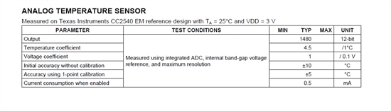 请问CC2540   ADC的精度是多少? 我这边需要做0.5度分辨率的温度检测。在资料中未找到相关信息,只找到如下信息。