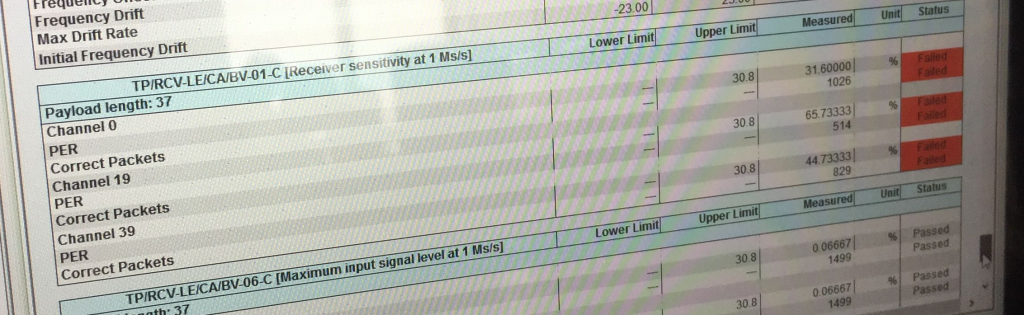 我們有客戶使用 R&S CMW270 的測試儀, 出現了以下幾個 "Failed" 的 情況, 其他的都 Passed.