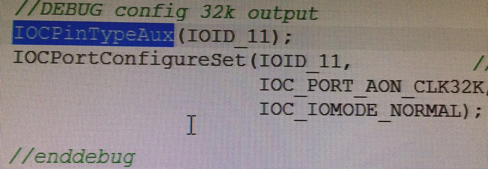CC2640R2F 如何使用GPIO 输出clock 32k?配置管脚如下,