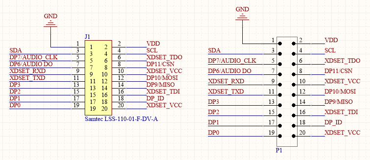 目前正在学习cc2650stk,需要用到它的ADC。官网上说可以构建自己的devpack。我就设计了一个简单的PCB,可以将sensortag上的扩展接口导出成常用的针脚。但把LSS-110-01-F-DV-A焊到PCB板上后插到cc2650stk上后,它就不工作了,就是自带的LED例程也不能运行。请问如何使它在连接这个PCB的情况下还能正常工作?