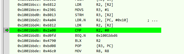 具体卡在代码的哪个位置无法定位,从disassembly窗口来看每次都卡在同一个地方,如图所示。