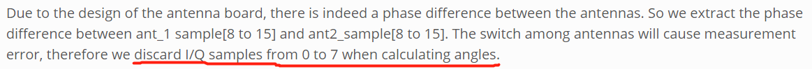 最近一直在做AOA定向测试,发现在天线切换过程中,会引起测试结果的不准确。发现,当把IQ数据导出后,对于每次天线上的16组采样数据,取前8-10组比较准确,后面的数据越来越离谱。像下图: