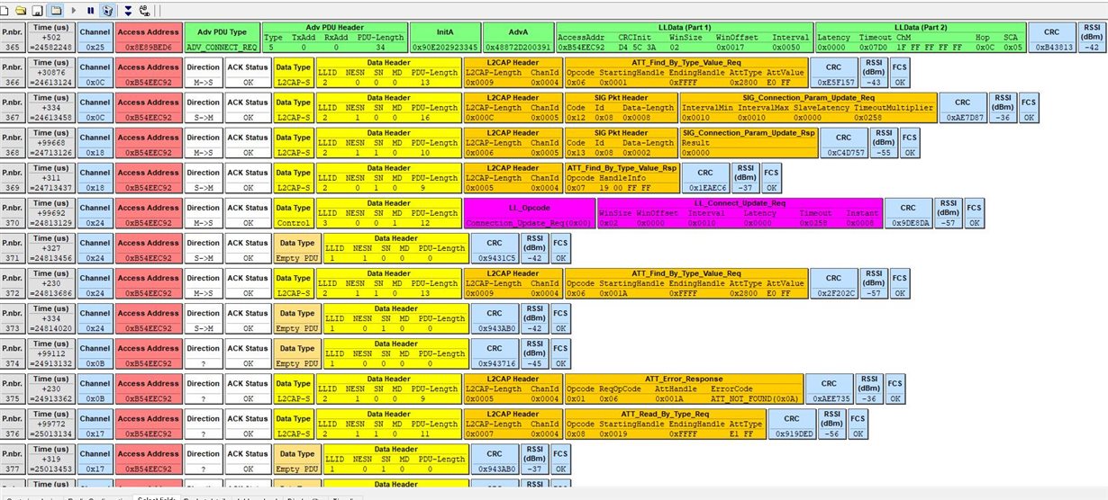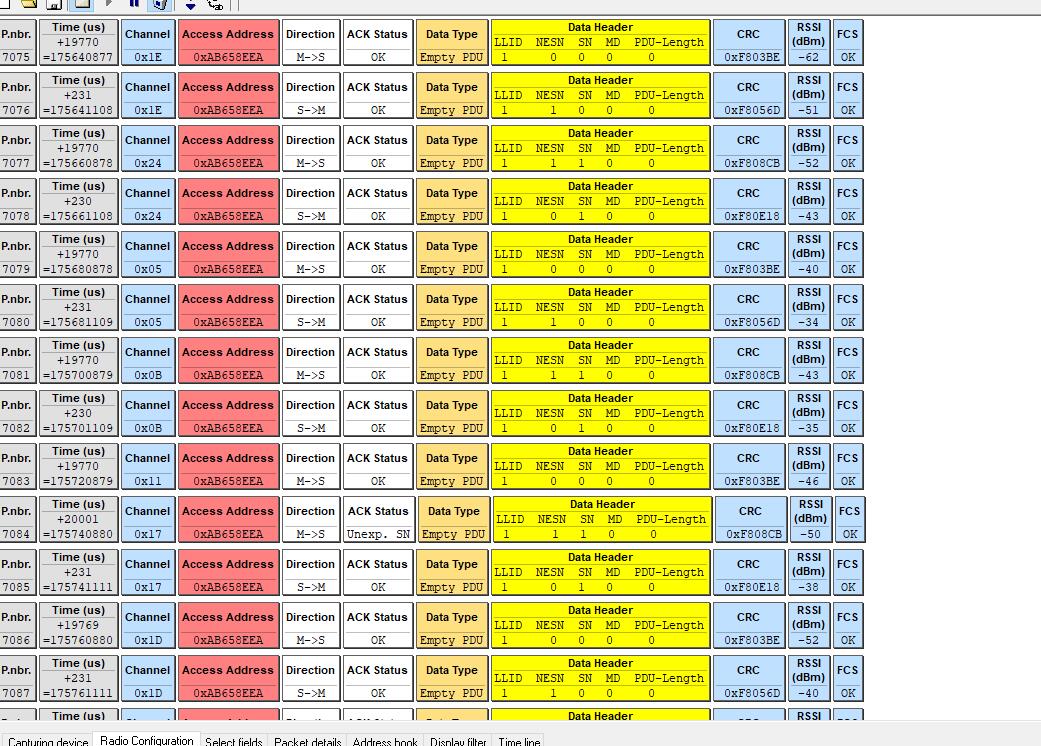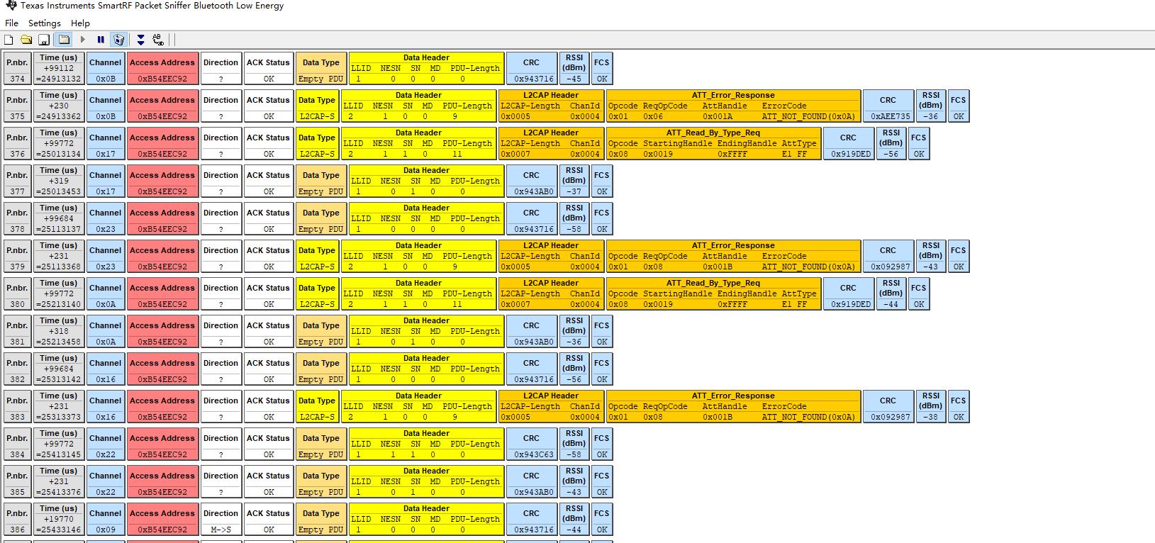 我CC2541和蓝牙从模块连接上了,互发数据收不到。抓包如上图所示,都是空的。怎么回事?谢谢!