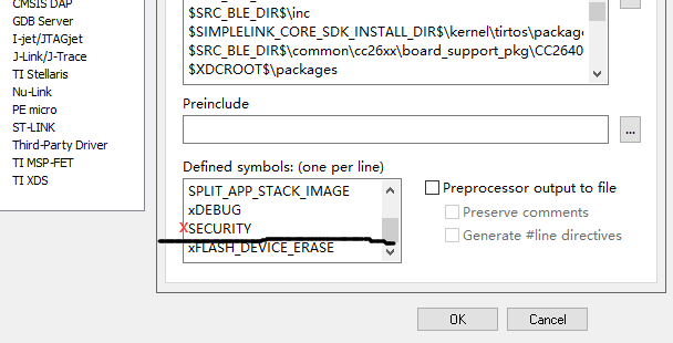 图中圈Ⅱ中这个是将stack,app和bim三个工程中C/C++中的宏定义那里再安全前面画红叉吗?如图:
