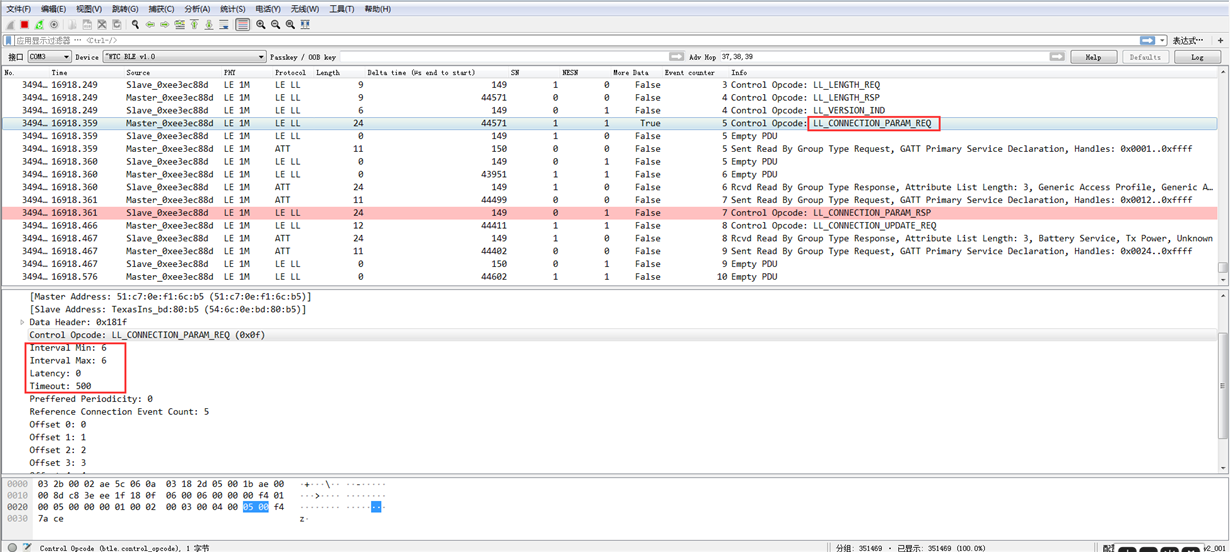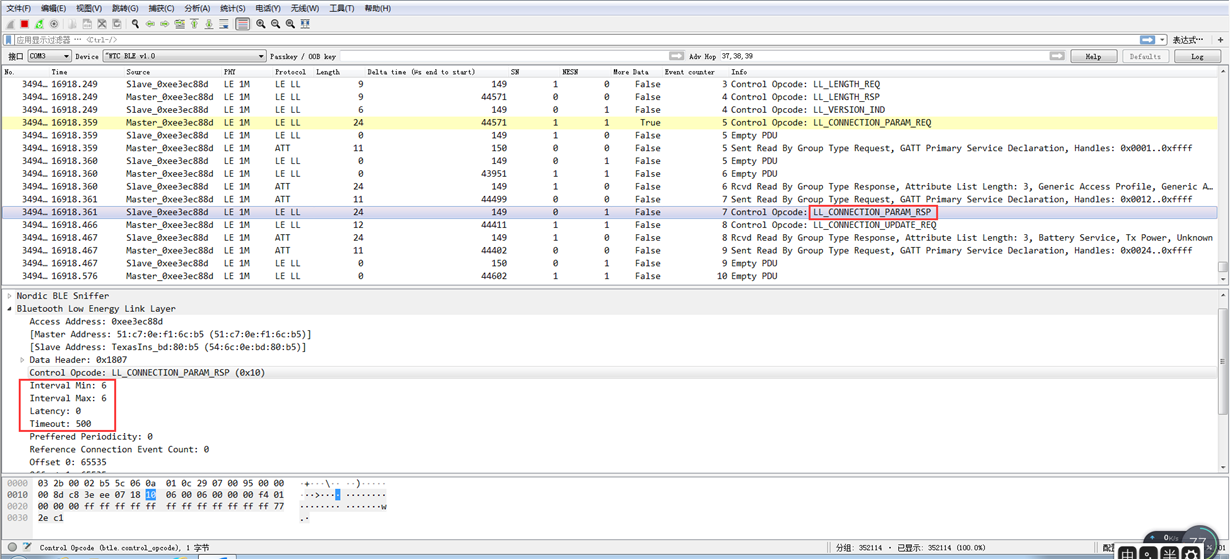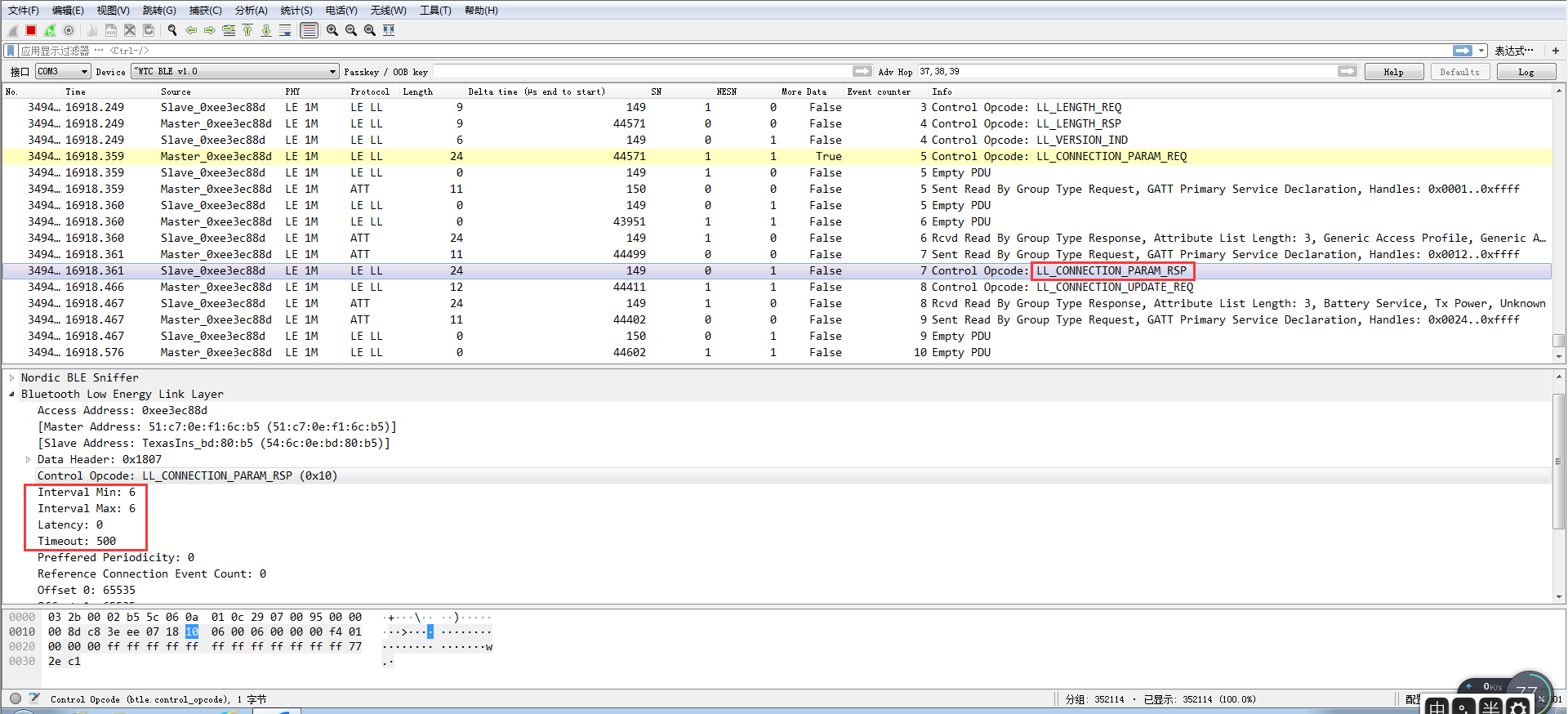 蓝牙模块收到后用 “GAP_UpdateLinkParamReqReply()” 函数返回连接参数如下的响应。