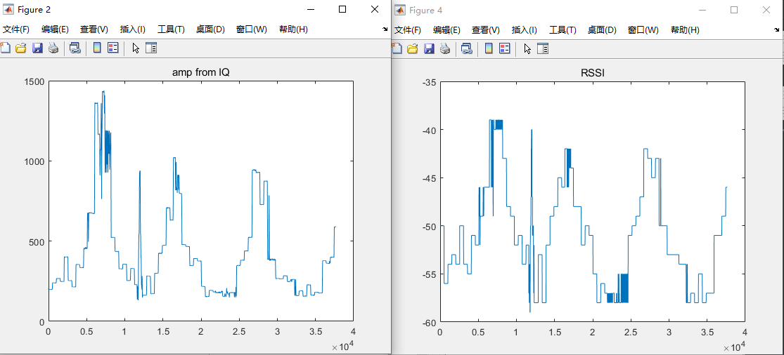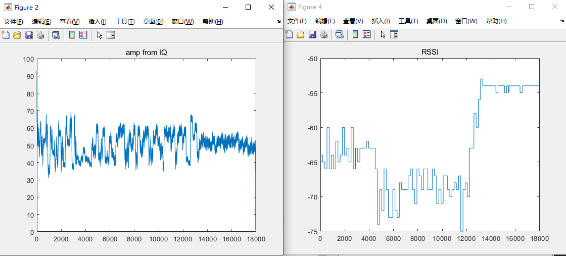 如下所示,我们进行了单独使用passive和master去进行IQ采集,从IQ信号计算出的AMP以及直接RSSi如下。可以观察到passive端采集的IQ与RSSi具有明显的关联,而而master端采集的IQ与RSSI显然不具有关联。同时根据相位可以观察出,passive接收到的IQ是constant signal的,而master端接收到的IQ的频率十分混乱。master端的IQ是否采集错了呢?