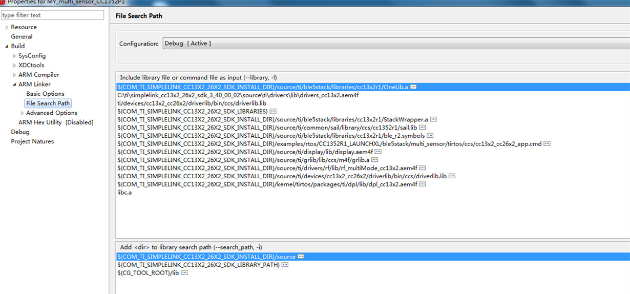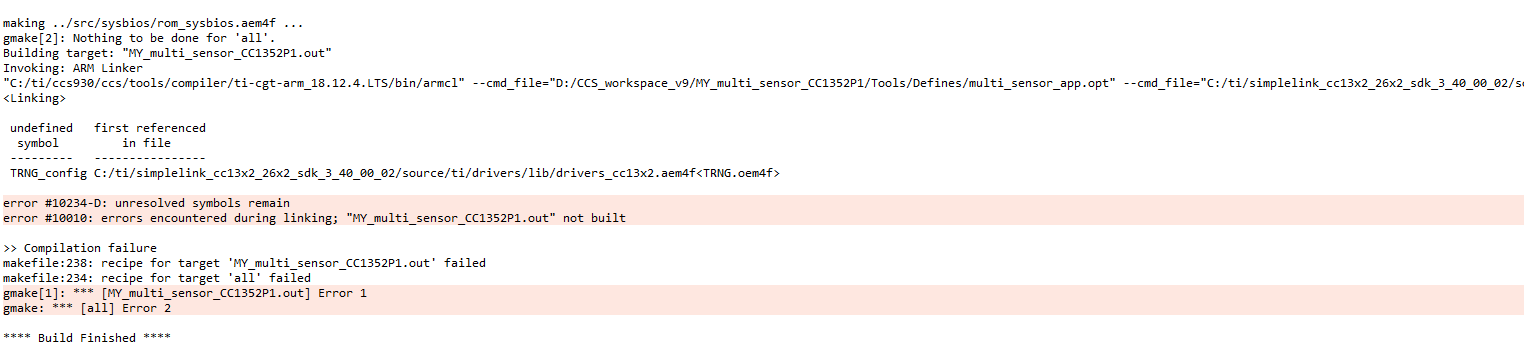 我将multi_sensor_CC13X2R3的工程移植到CC1352P上面,遇到 TRNG_config C:/ti/simplelink_cc13x2_26x2_sdk_3_40_00_02/source/ti/drivers/lib/drivers_cc13x2.aem4f<TRNG.oem4f> 编译不能通过,重新安装SDK,更换库路径,在 ARM Compiler - Include Options 设置路径都不行,请问这个问题是出在哪里?有无相应的教程?