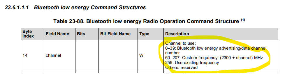根据参考文档上描述,BLE通信可以修改频点,如下: