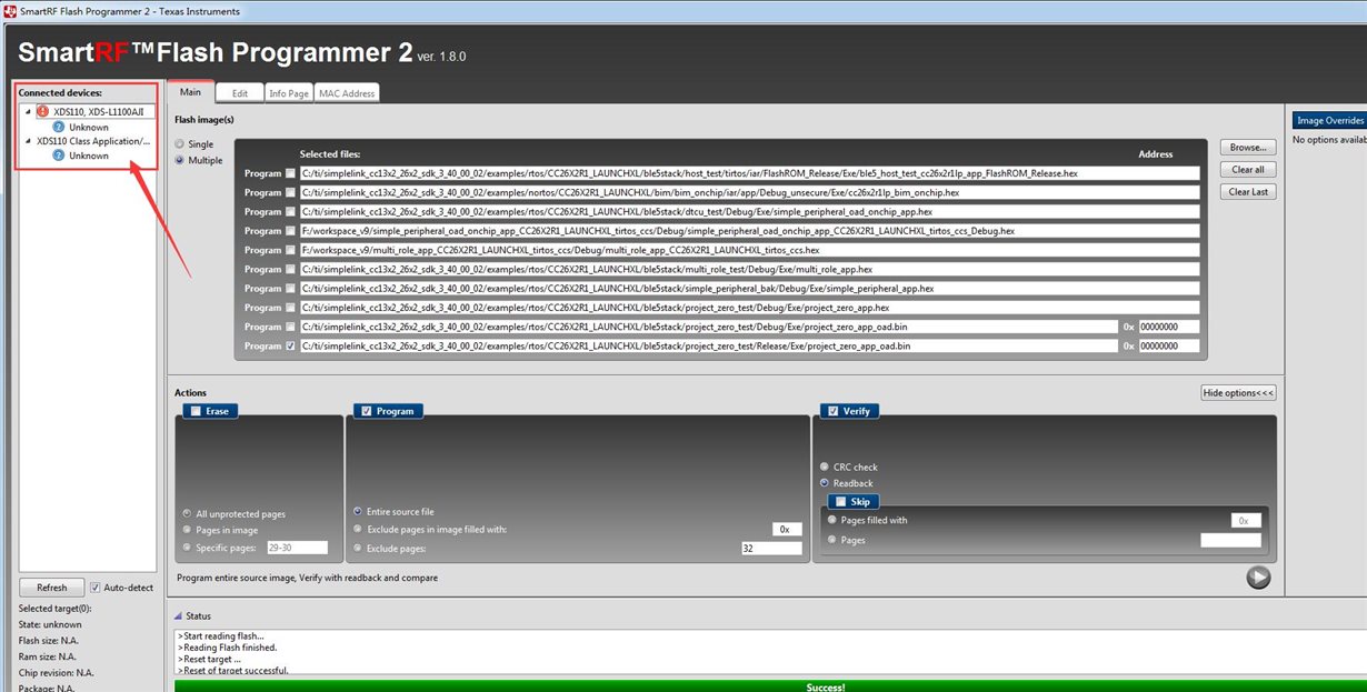 当再次换回smart rf Flash Programmer 2 ver1.8.0烧写固件,仿真器红色提示,如下图,升级固件后可以正常使用。这正常吗?
