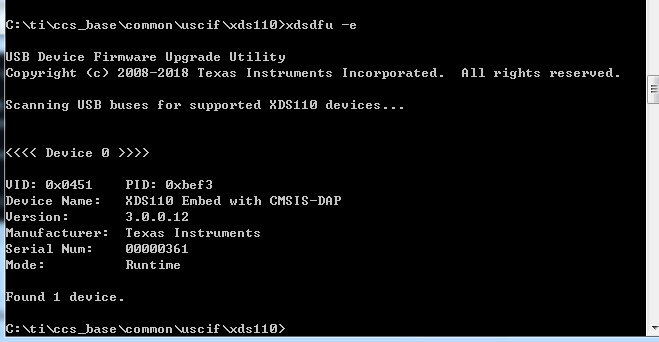 我是用的的UniFlash中的xds110固件,  XDS的序列号应该正常吧.
