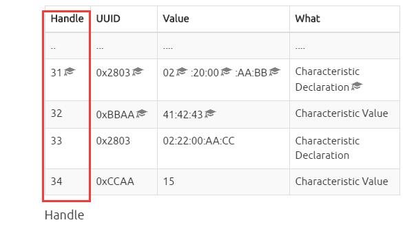uint16 handle; //!< Attribute handle - assigned internally by attribute server